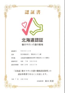 法人本部 【祝】黒松内つくし園の各事業所が「北海道働きやすい介護の職場」の認証を受けました